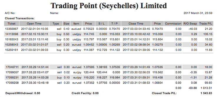 久々の投稿ですが、コツコツトレードしてました。2017年3月は$1543.63でした。
