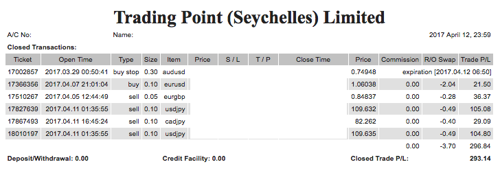 翌12日に決済。クロス円が下げたところうまく仕掛けにハマりました。$293.14でした。